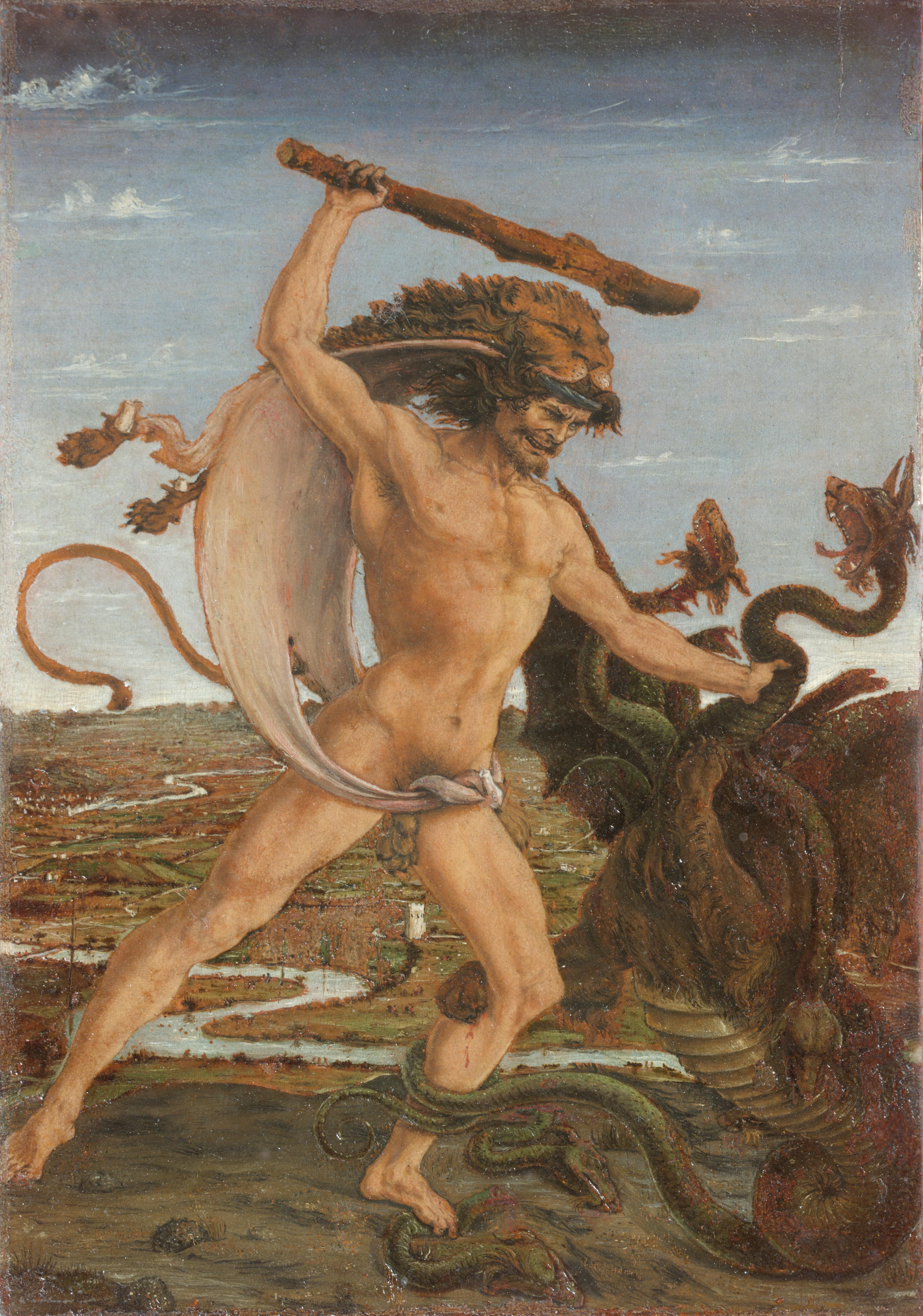 "Ercole e l'Idra" è una delle opere più celebri di Piero di Cosimo, un artista del Rinascimento italiano che lavorò tra la fine del XV e l'inizio del XVI secolo. La scena rappresenta uno degli episodi più noti della mitologia greca, tratto dalle Dodici fatiche di Ercole: l'eroe greco, figlio di Zeus, è rappresentato mentre affronta e combatte l'Idra di Lerna, un mostro acquatico con molte teste che, secondo la leggenda, cresceva nuove teste ogni volta che venivano tagliate.