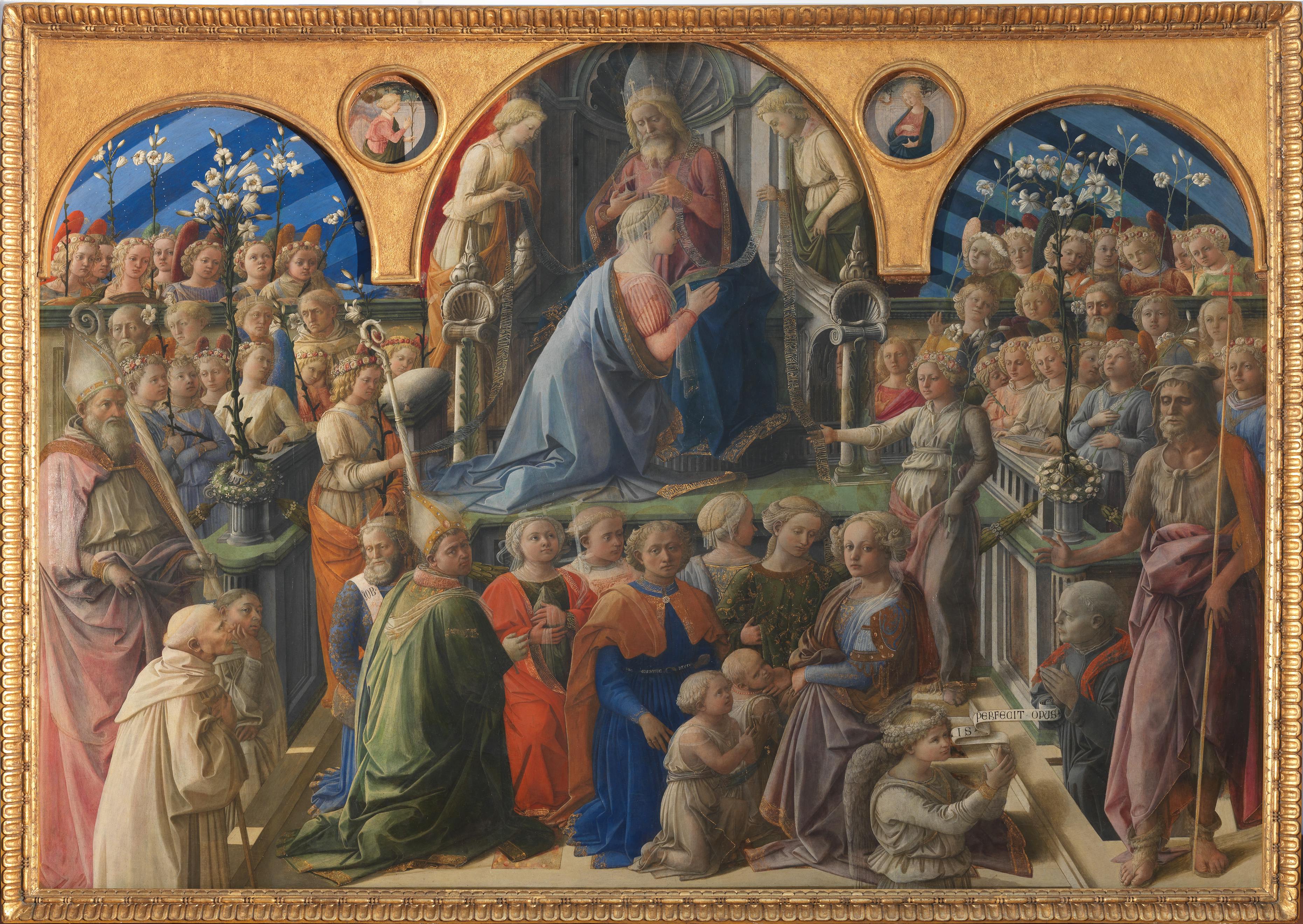 La "Incoronazione di Maria" si inserisce in un ampio corpus di opere che trattano il tema della Madonna, un soggetto molto caro alla tradizione cristiana, in cui Maria viene elevata alla sua gloria celeste con la coronazione come Regina del Cielo da parte di Cristo o di un angelo. L'opera di Filippo Lippi, come molte delle sue creazioni, si distingue per la sua delicata fusione di elementi sacri e umani, rendendo il divino più vicino al cuore degli uomini, attraverso la rappresentazione di figure umanizzate, graziose e piene di dolcezza.